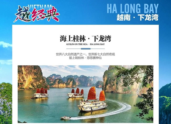 特別聲明:如因越南雨季臺風(fēng)季節(jié),地接社可在不減少景點的情況下,調(diào)整游客的參觀順序,使游客可以參觀到下龍灣海上桂林,如果天氣原因未能參觀下龍灣及天堂島的,則替換為陸上景點。