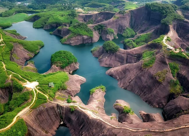 抵達(dá)后,前往郴州抖音最火網(wǎng)紅打卡地【高椅嶺】(游覽時間約3.5小時)。車覽【馬皇丘大峽谷】,峽谷原為一條小路穿行而過,現(xiàn)為一條漂亮的馬路,卻造就了另一種景觀,其中絕壁上的酷似女性私處【陰元石】更是丹霞景觀一絕。而后徒步高椅嶺,欣賞絕美之丹霞碧水,【巨蜥臥水】。先是歷經(jīng)【瓜石頸】之天梯險境,再是近距離感受【羊牯石】景區(qū)之絕美。從高處往下鳥瞰瓜石頸,一條清澈美麗的“天河”蜿蜒穿行在丹霞地貌之間,或?qū)捇蛘?,蔚為大觀,從羊牯石景區(qū)原路返回至瓜石頸,沿另一條石級自上而下欣賞水中“巨蜥”形神兼?zhèn)渲^美,驚于大自然的造化與鬼斧神工。這一片丹霞碧水,因為丹霞地貌周邊有漂亮的水洼點綴,美得一塌糊涂。