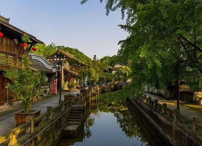 岷江的支流味江流經(jīng)地勢(shì)平緩的街子鎮(zhèn)口,形成一泓碧潭——龍?zhí)?。古?zhèn)水系發(fā)達(dá),地下水豐富,石板路兩側(cè)及屋前院后,常年清水不斷,因而有“川西水鄉(xiāng)”之名。“青城后花園”之稱。景區(qū)屬亞熱帶濕潤(rùn)氣候,年平均氣溫15.9℃,盛夏氣溫低于成都市區(qū)4—5℃,全年均適宜旅游。