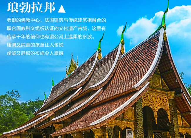 ★老撾的佛教中心,法國建筑與傳統(tǒng)建筑相融合的;聯(lián)合國教科文組織認(rèn)證的文化遺產(chǎn)古城,這里有傳承千年的信仰,也有湄公河上溫柔的水波。靦腆又純真的孩童讓人愉悅,虔誠又靜穆的布施令人震撼——瑯勃拉邦